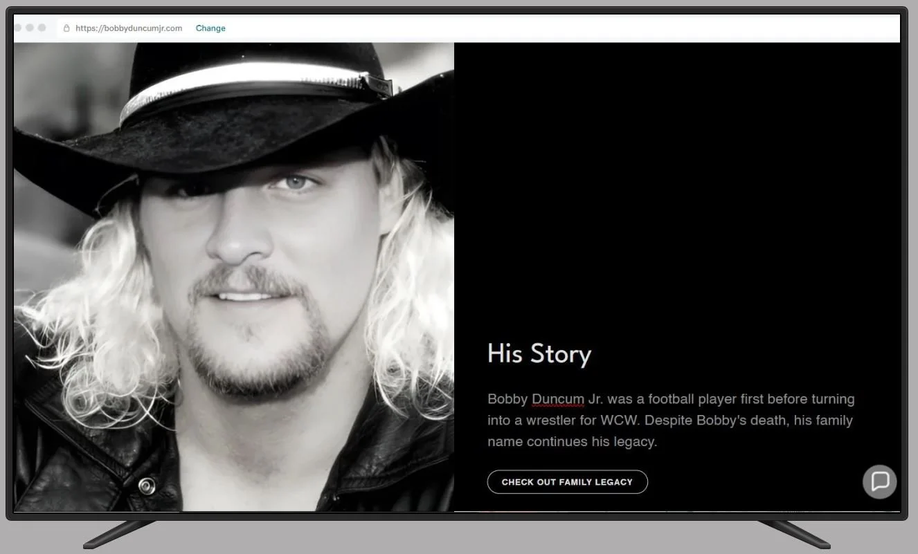Bobby Duncum Jr. is a football star-turned-professional wrestler. My client wanted to memorialize his legacy after passing away many years ago. She challenged me to make the website in accordance with the existing brand he and his father created during their wrestling years.