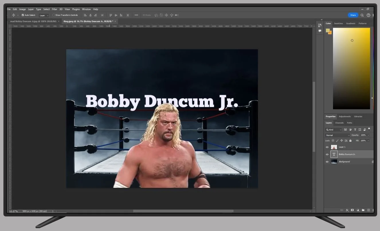 Design Round 1: My client challenged me to make it on-brand with Bobby Duncum’s brand style.